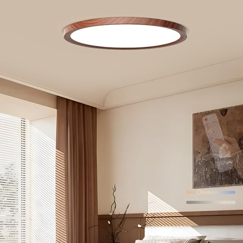 LED Wood Ceiling Light Dimmable 2700K-6500K Ceiling Lamp with Remote Control Ceiling Lights Flush Mount Ceiling Lighting Modern Decorative for Living Room Kitchen Lounge
