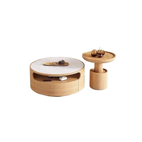 OGOODLE Coffee Table Yan Stone Round Combination Center Table, Solid Wood Furniture for Small Living Space Balcony Patio Lounge Side Table