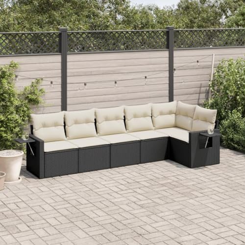 Yunovire 6-TLG Garden Sofa Set Poly Rattan Black Modular Outdoor Lounge with Cushion Side Table for Terrace Balcony Outdoor