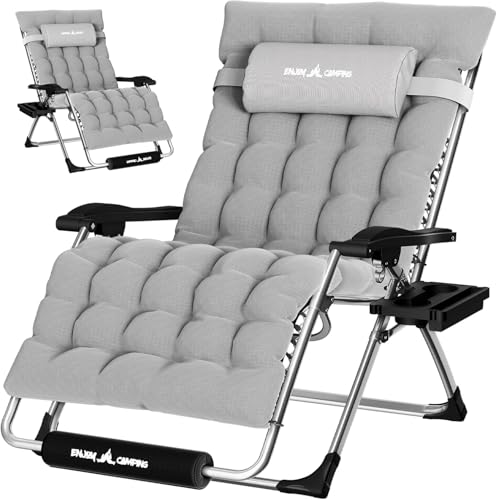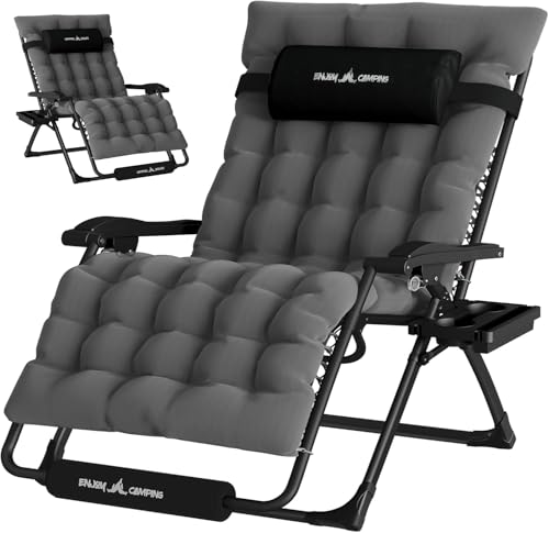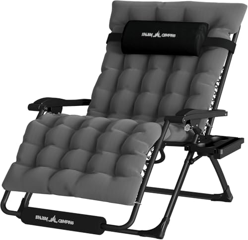 UDPATIO Sun Loungers with Cushion for Garden, Outdoor Reclining Zero Gravity Chair with Cup Holder, Extra Wide Folding Lounger Chair for Patio Beach Pool, Support 200kg Dark Grey XL