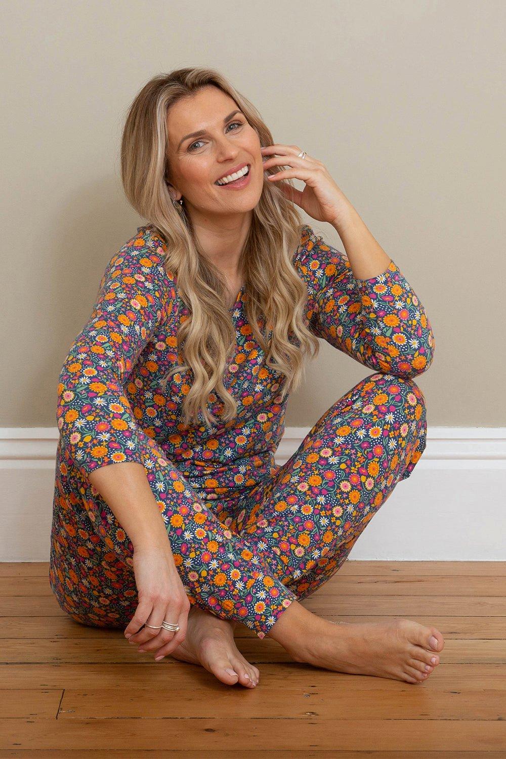 Beliani Set of 2 Garden Loungers Light Acacia Wood ANZIO Poppies Pattern
