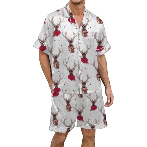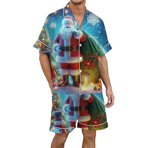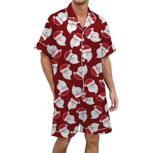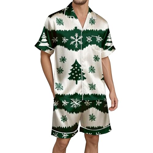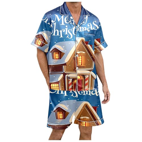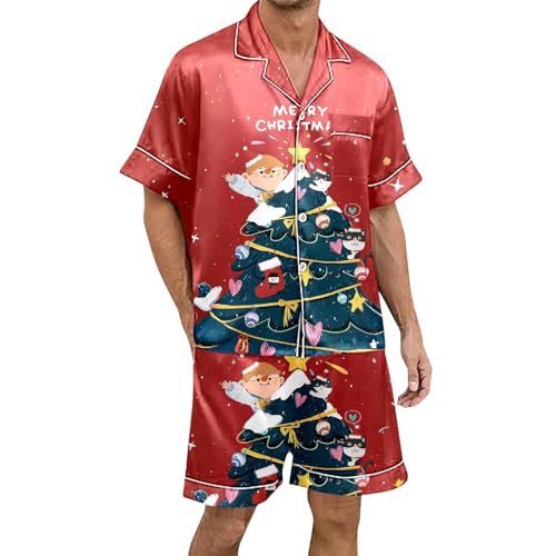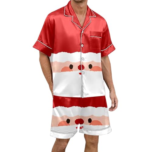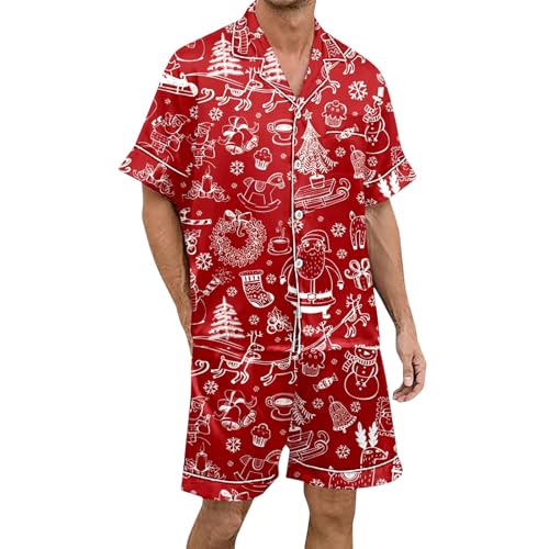 Christmas Pyjamas Men, Men's Nightwear Shorts, Short Sleeve Set Loungewear Plus Size Sleepwear Lightweight Dry Soft Sleep Set with Pocket Soft Xmas Sleepwear Cute Cartoon Holiday
