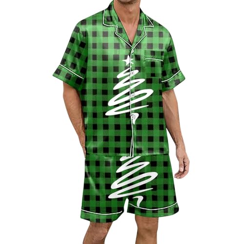 Men Pyjamas Set Christmas, Christmas Pjs Men Shorts, Pyjama Set with Short Sleeves and Trousers Sleepwear Lightweight Dry Soft Sleep Set with Pocket Pjs Loungewear Sets Breathable Casual Home