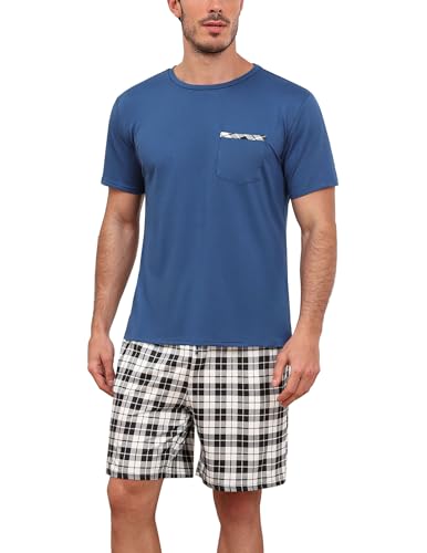 Ekouaer Mens Pyjama Set Short Sleeve T Shirt Shorts Sleepwear Loungewear Nightwear for Men Soft Comfortable Mens PJs, Blue, XXL