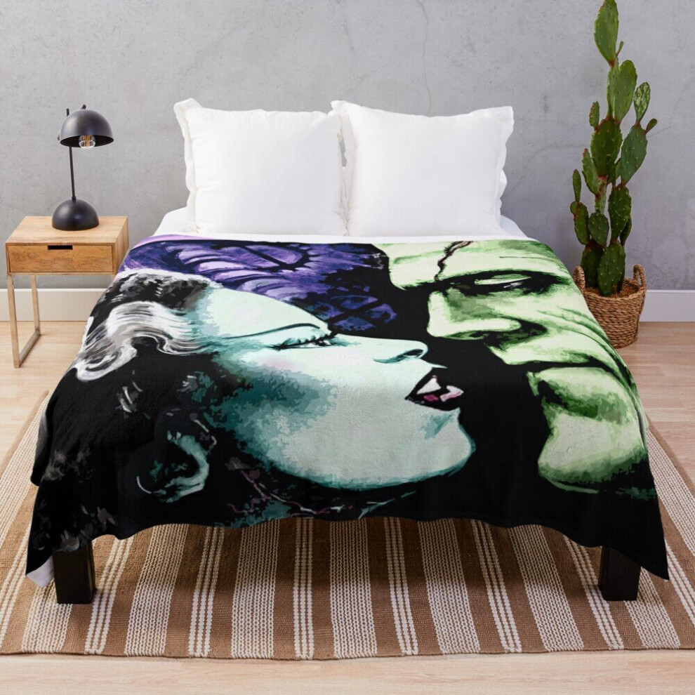 Fleece Throw Blanket Bride Frankie Monsters in Love for Sofa Couch Kids 60 x 50 Inches