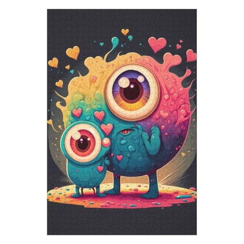 Teenagerss Puzzles 1000 PCS Jigsaws Two-eyed Monster Love Puzzles for Adults Anti-Stress Toys Analysis And Logic for Birthday, Chrismas 1000 PCS