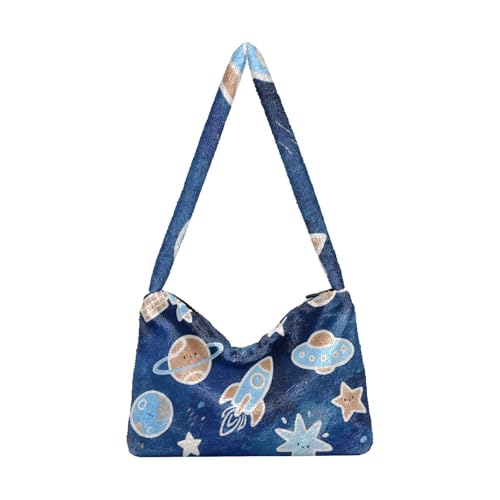 EtherSpher Lovely Blue rocketing Planet Plush Underarm Bag shoulder purses for women crossbody birthday gifts