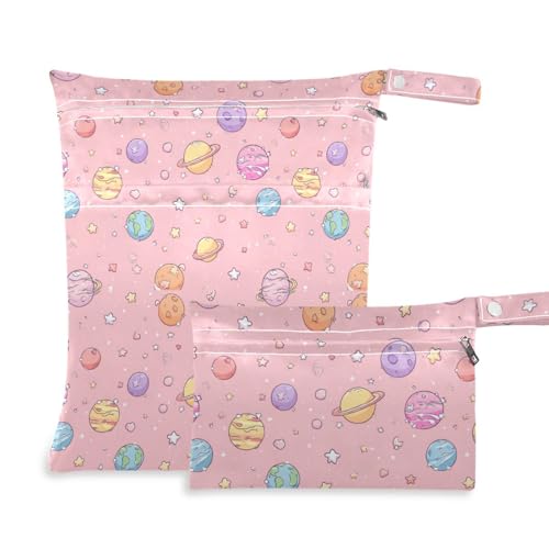 Fuauuyl Baby Cloth Diaper Bags, Waterproof Wet Dry Bag with Zippered Compartments for Beach Gym Pool Travel-(Lovely Planet)