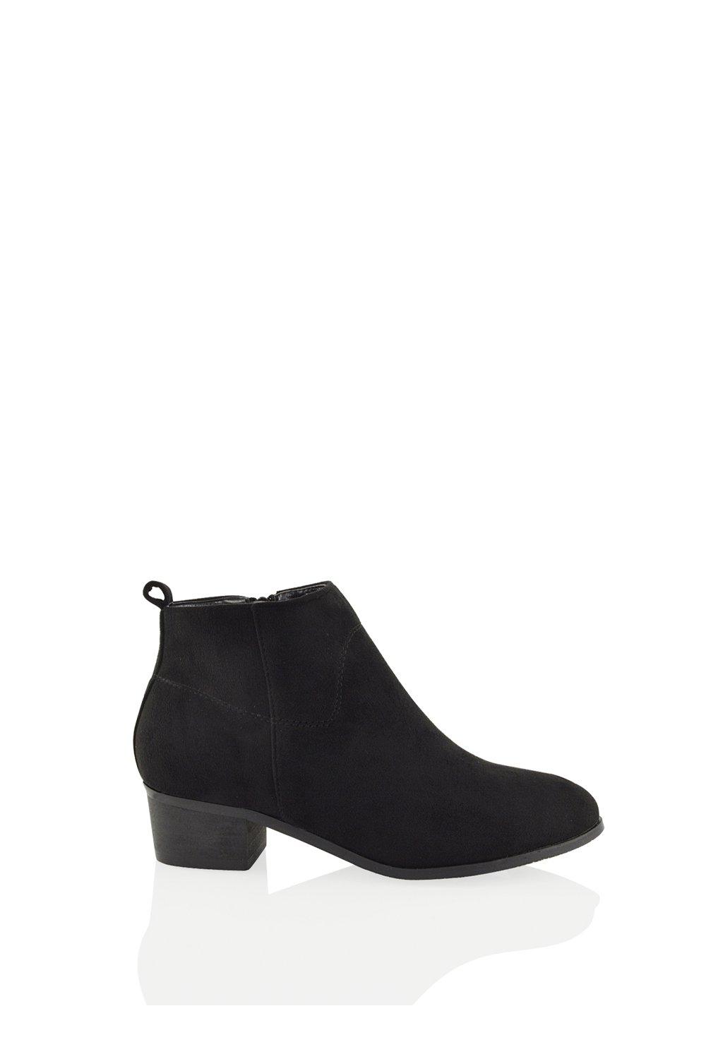 Willtoo Women's Low Heel Suede Ankle Boots, Chunky Heel, Side Zipper, Round Toe, Non-Slip Lug Sole â Black
