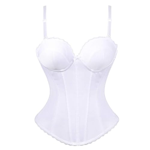 AIGOUT Bridal Lightweight Vest-Style Corset Bra-Style Elasticated Bodysuit Wedding Undergarment with Underwired Shaping - Low Back Strapless Bridal Bustier for Women (Plus Size Friendly) (White, XS)