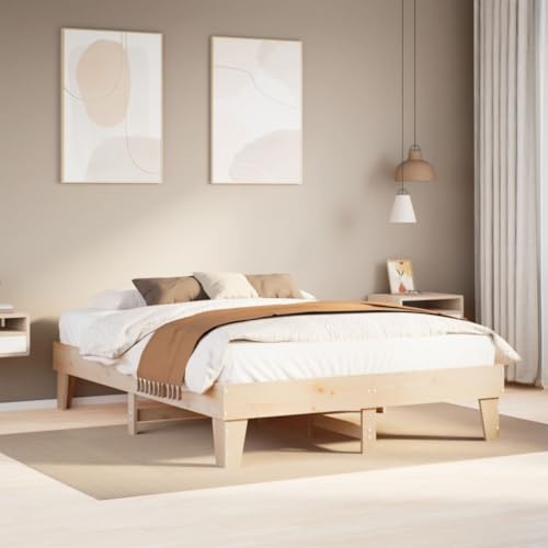 mzdioop Solid Pine Wood Bed Frame 140x190 cm, Low Profile Platform Bed Base, Sturdy Wooden Bedstead with Slatted Support, Natural Untreated Finish for Bedroom