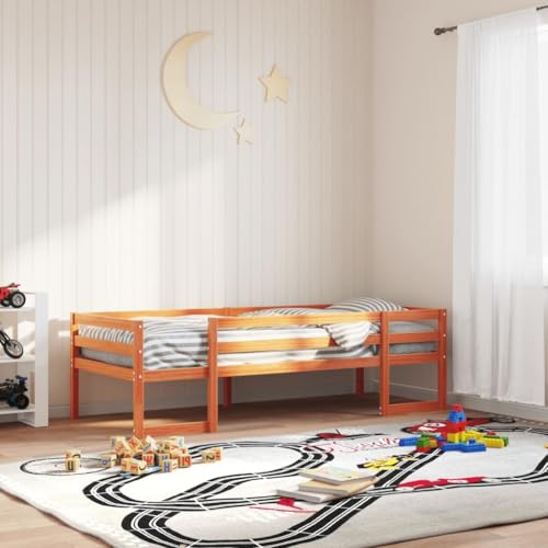 mzdioop Children's Bed Frame, Wax Brown 90x200 cm, Solid Pine Wood, Slatted Base, Low Profile Platform Bed for Kids Room, Durable & Stable
