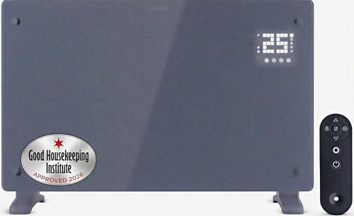 Devola Wifi Enabled Smart Electric Glass Panel Heater 2000W | Wall Mounted Radiator & Free Standing Low Energy Heater, Works With Alexa | Lot 20 complaint, DVPW2000G (2000, Watts)