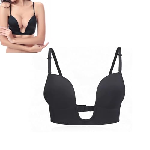 DotVol Women's Push-Up Plunge U-Neck Backless Low Cut Underwire Bra with Convertible Straps(Black V, 36D)