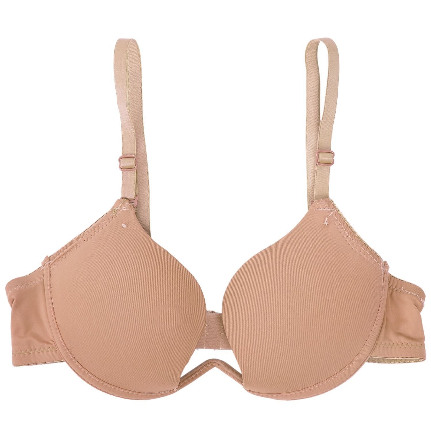ZUKULIFE Women's Essentials Deep U Multi-Way Push Up Convertible Low Cut Plunge Bra, Apricot, 34C