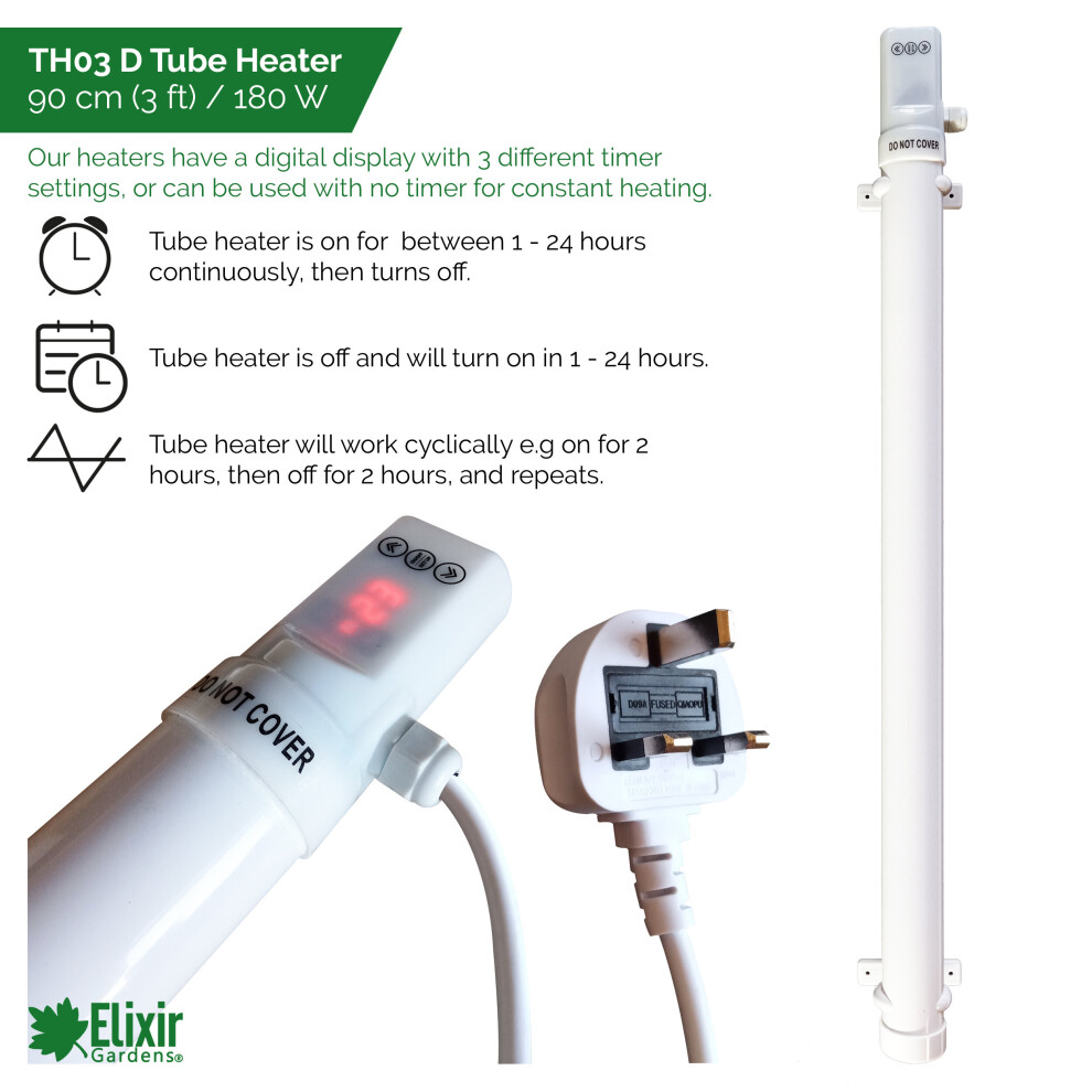 (TH03D, 90cm 180Watt, None) Low Energy Tube Heaters with Digital Timers | Optional Thermostats & Guards