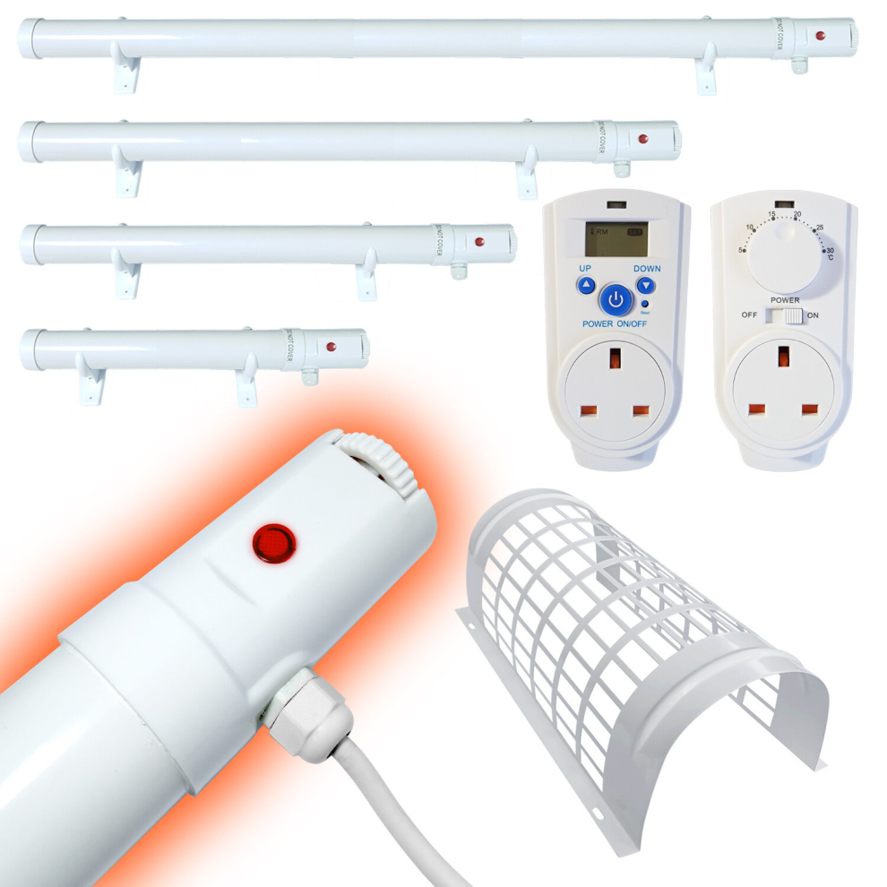 (TH04D, 120cm 240Watt, None) Low Energy Tube Heaters with Digital Timers | Optional Thermostats & Guards