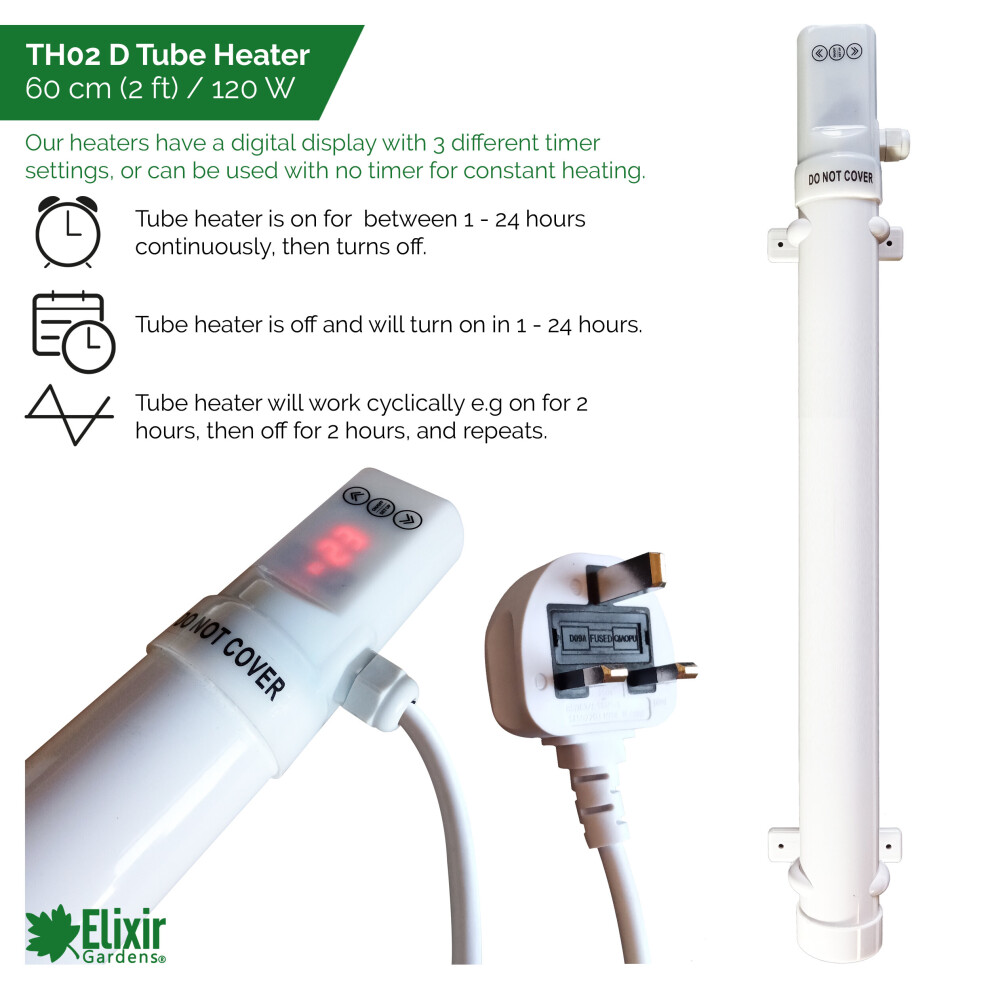 (TH02D, 60cm 120Watt, None) Low Energy Tube Heaters with Digital Timers | Optional Thermostats & Guards