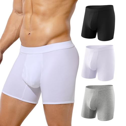 Arjen Kroos Men's Underwear Trunks Cotton Longer Leg Boxer Briefs with Fly Low Rise Boxer Shorts Underpants Pack of 3-XXL