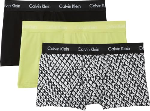 Calvin Klein Men’s 3 Pack Low Rise Trunks, Green (GREEN BLOOM/PLUSH MONOGRAM White/B), XL