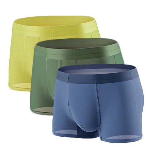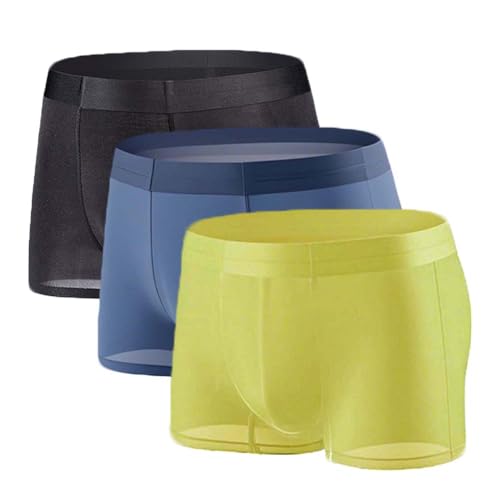 YUSHOW Mens Boxer Shorts Ice Silk Underwear Sexy Ultra Soft Breathable Low Rise Trunks 3 Pack