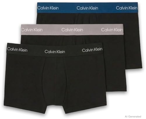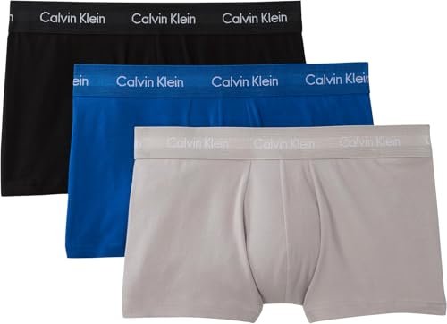Calvin Klein Men’s 3 Pack Balance Low Rise Trunks, Multicolor (Black/Wrapped Logo_Black/Regatta), L