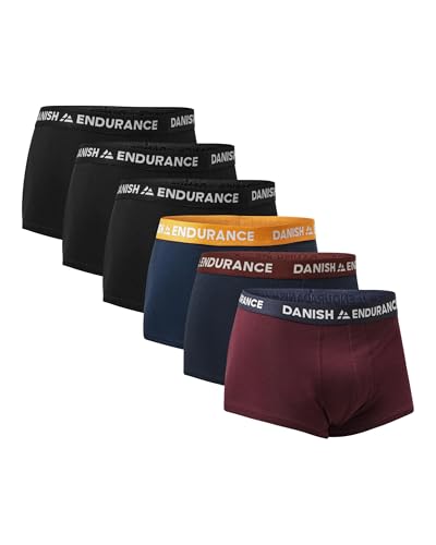 DANISH ENDRUANCE Mens Low Rise Trunks, Cotton Underwear for Men, Stretchy Men's Boxer Shorts, 6 pack, Multicolor (3xBlack, 1xNavy Blue/Orange, 1xNavy Blue/Bordeaux, 1xBordeaux/Navy), X-Large