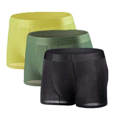 YUSHOW Mens Boxer Shorts Ice silk Underwear Sexy Ultra Soft Breathable Low Rise Trunks 3 Pack