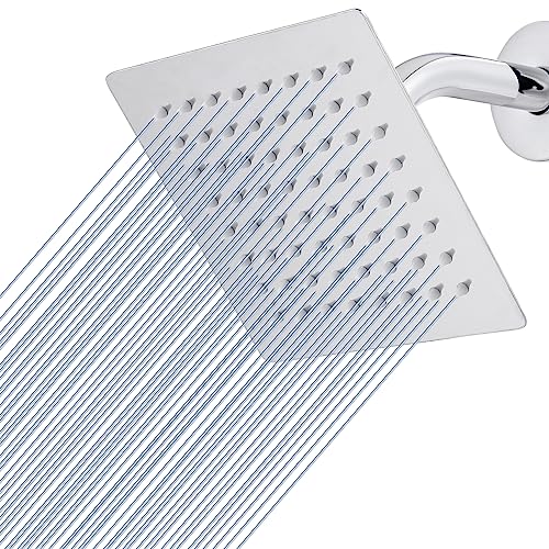Voolan 6" High Pressure Rain Shower Head, Square Shower Heads Made from 304 Stainless Steel Material, Comfortable Shower Experience Even at Low Water Flow (Chrome)