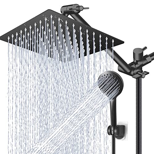 High/Low Pressure Water Rain Shower Head with 11 Inch Adjustable Extension Arm and 5 Settings Handheld Shower Head Combo,Powerful Shower Spray - Matte Black, 12 Inch