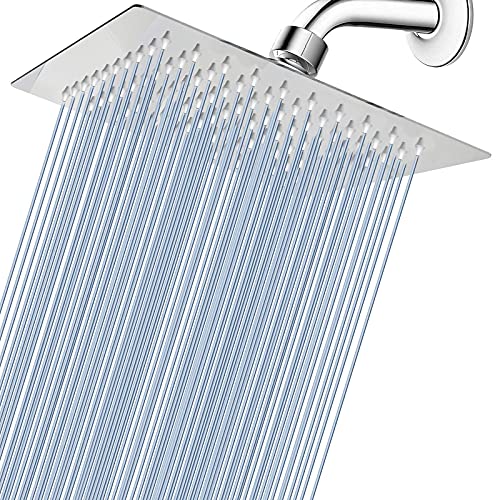 Voolan 8" High Pressure Rain Shower Head, Square Shower Heads Made from 304 Stainless Steel Material, Comfortable Shower Experience Even at Low Water Flow, Chrome