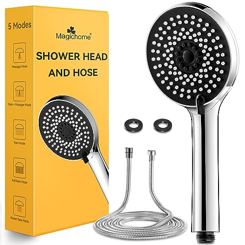 Magichome Shower Head and Hose 2M, High Pressure Shower Head with 5 Modes, Universal Handheld Showerhead for Low Water Pressure