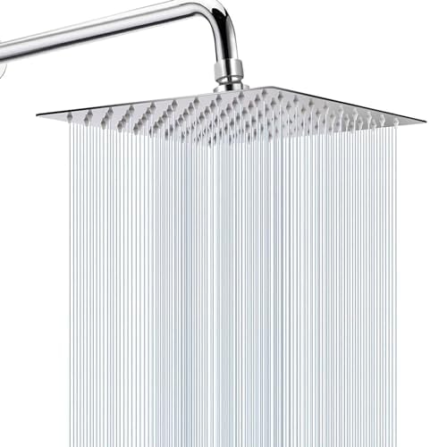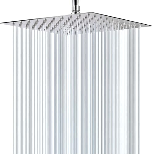 Rain Shower Head, WOOPHEN 12" High Flow Stainless Steel Square Rainfall ShowerHead, High Pressure Design, Awesome Shower Experience Even at Low Water Flow (Chrome)
