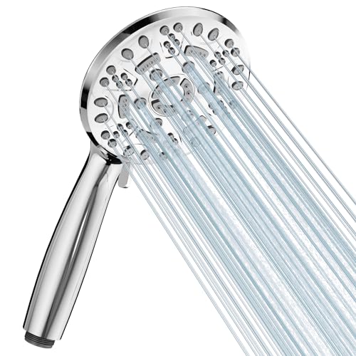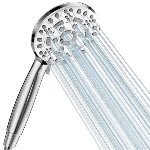 YEAUPE Shower Head with Filter,Powerful Flow Shower Heads High Pressure 6 Modes Pressure Boosting Handheld Showerhead for Low Water Pressure Electric Shower Head,Chrome