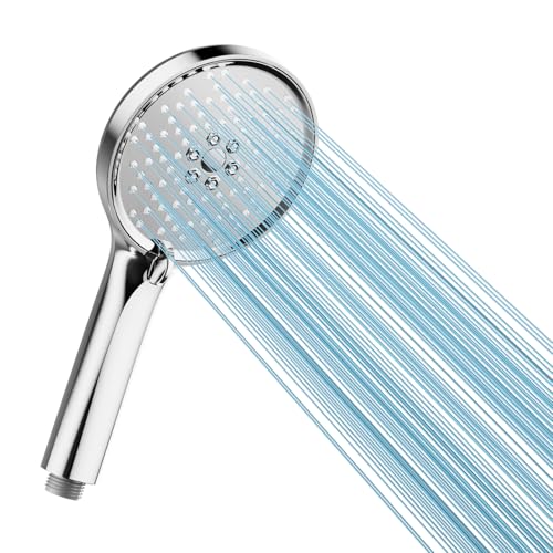 YEAUPE Shower Head,110mm Large Powerful Flow Shower Heads High Pressure 6 Modes Pressure Boosting Handheld Showerhead for Low Water Pressure Electric Shower Head,Chrome