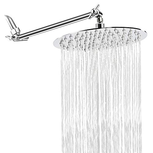 12 Inch Shower Head, High Pressure Shower Head with 11 Inch Adjustable Extension Arm and 5 Settings Shower Head, Powerful Spray Against Low Pressure Water with Long Hose