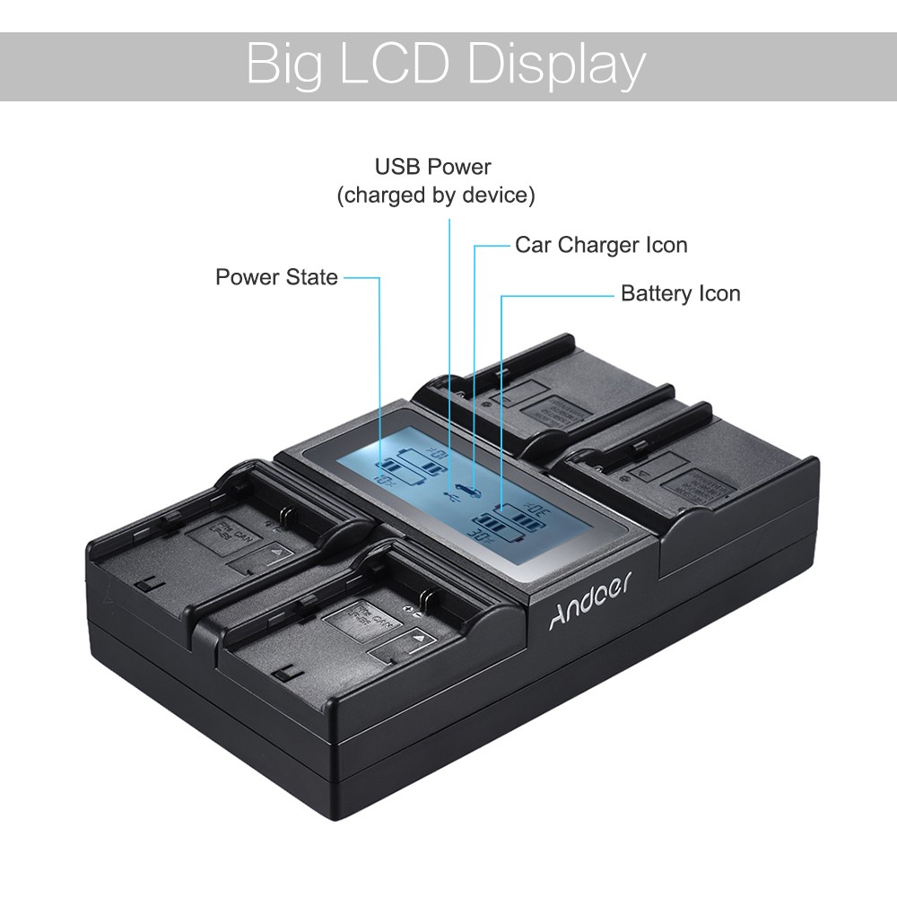 Andoer LP-E6 LP-E6N NP-F970 4-Channel Digital Camera Battery Charger W/ LCD Disp