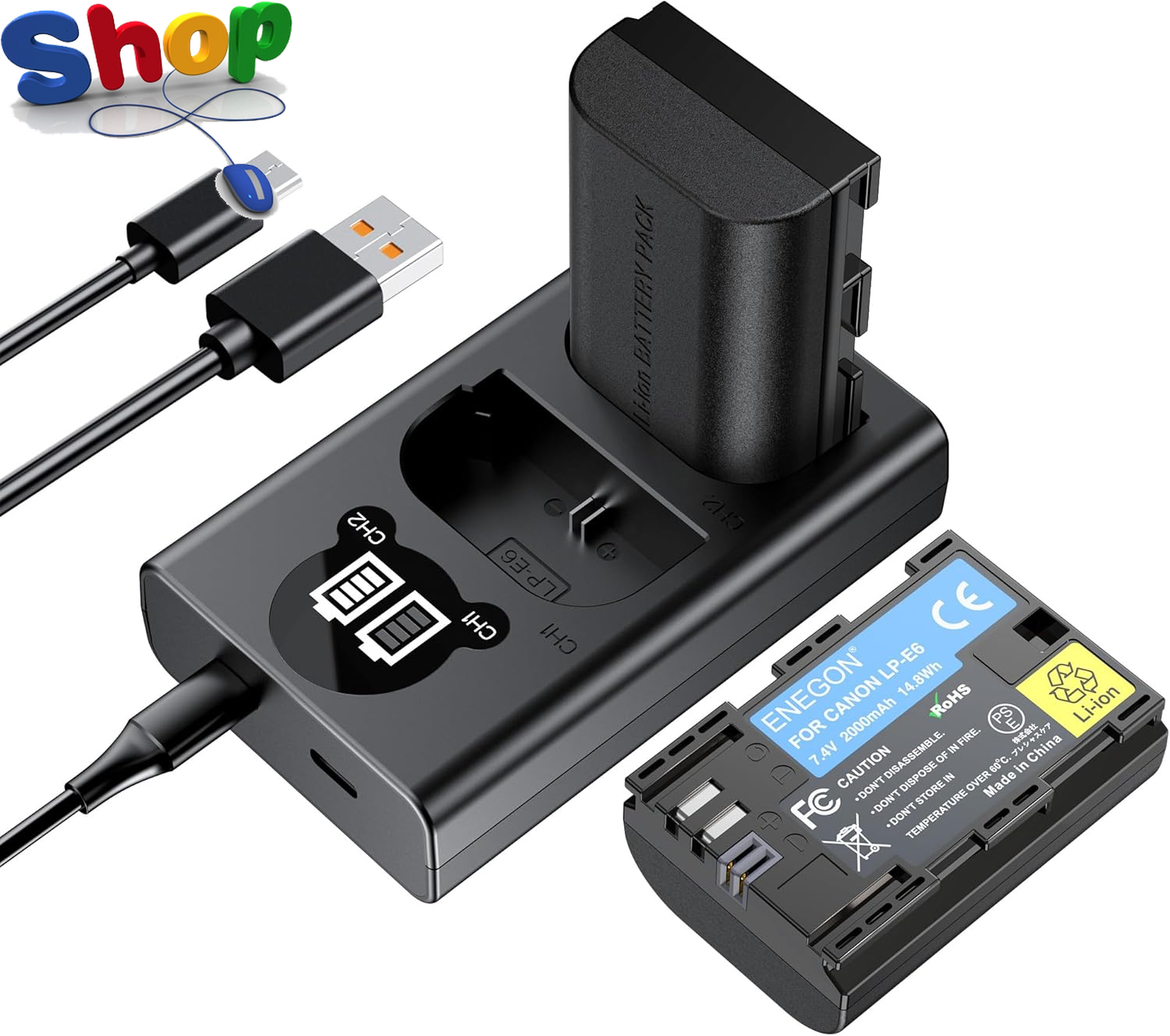 ENEGON LP-E6 LP-E6N Type C Charging Port Battery(2 * 2000mAh) for Canon EOS 5D Mark II/III/IV, 5DS, 5DS R, 6D,6D Mark II, 7D,7D Mark II, 60D, 70D, 80D, 90D
