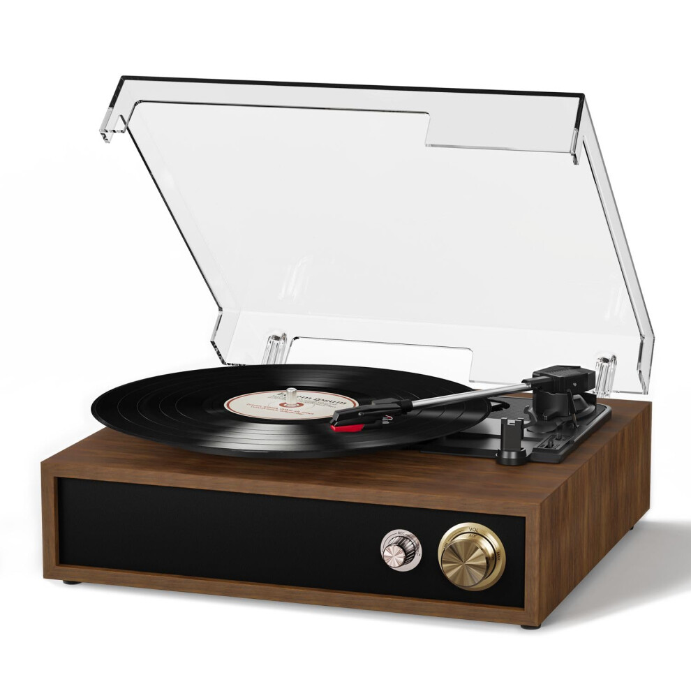 (Walnut) Record Player, Vinyl Record Player with Speakers Vintage Turntable for Vinyl Records, Belt-Drive 3-Speed 33/45/78 RPM LP Vinyl Player