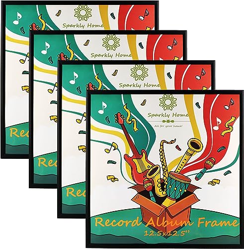 SparklyHome 4 Packs,12.5x12.5 Black Aluminum Metal Vinyl Record Album Frame, Display Music Vinyl LP Record Album Covers, Hanging Hardware Included