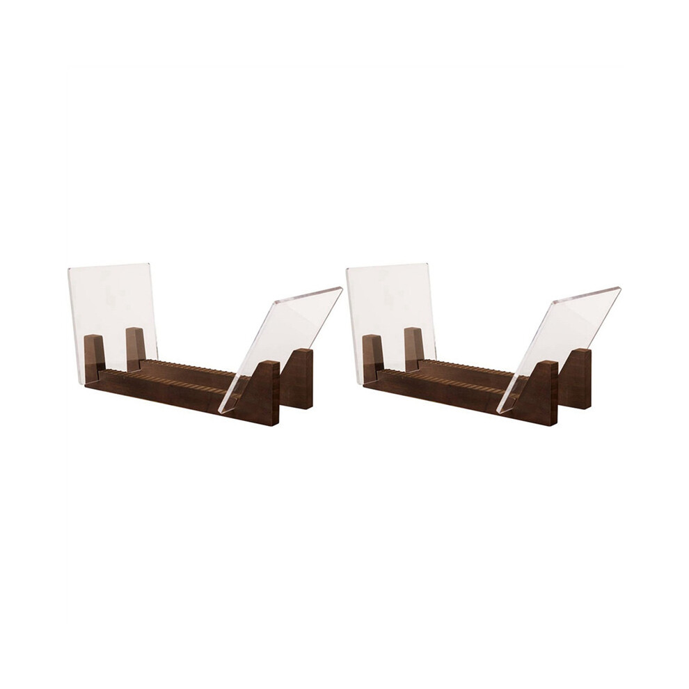 2X Vinyl Record Storage Holder Capacity Acrylic Ends Display Stand Wooden LP Vinyl Album Desktop Rack