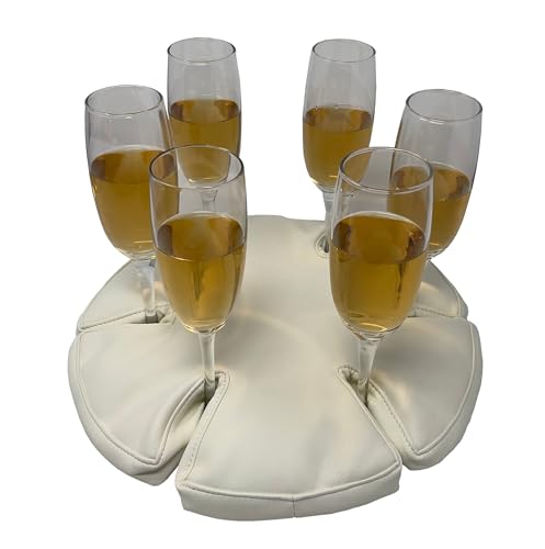 Glass Anchor - The Good-Looking Wine Glass Holder for Boats, picnics, Festivals, Camping, motorhomes. Colour: White Leather. Holds 6 Glasses. No fixings Needed. Stop The Spills!