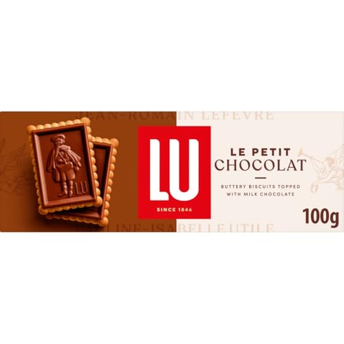 LU Le Petit Chocolat Milk Chocolate Coated Biscuits, Classic French Buttery Biscuit Snack Topped with Smooth Milk Chocolate 100 g (Pack of 1)