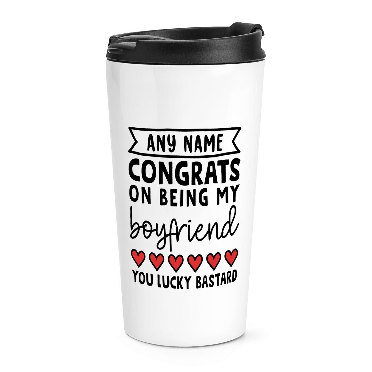 Personalised Congrats On Being My Boyfriend You Lucky Travel Mug Cup Love