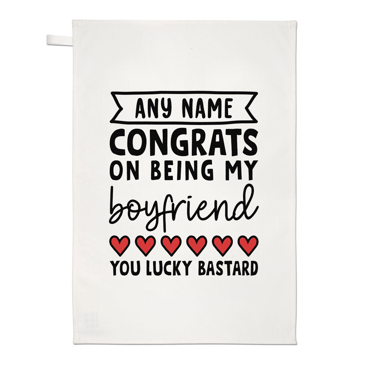 Personalised Congrats On Being My Boyfriend You Lucky Bastard Tea Towel Love