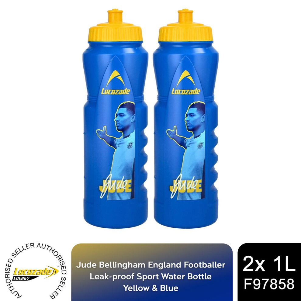 Lucozade Sport x Jude Bellingham England Football 1L Sports Water Bottle – leak proof, with sports cap & measuring strip, in yellow & blue
