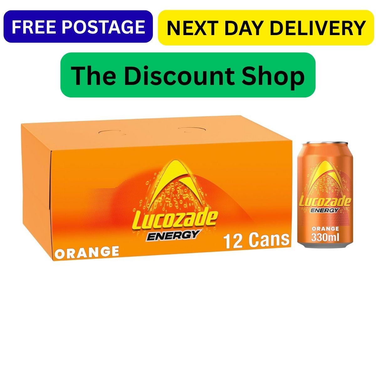 Lucozade Energy Drink Orange (12x330ml) Next day delivery