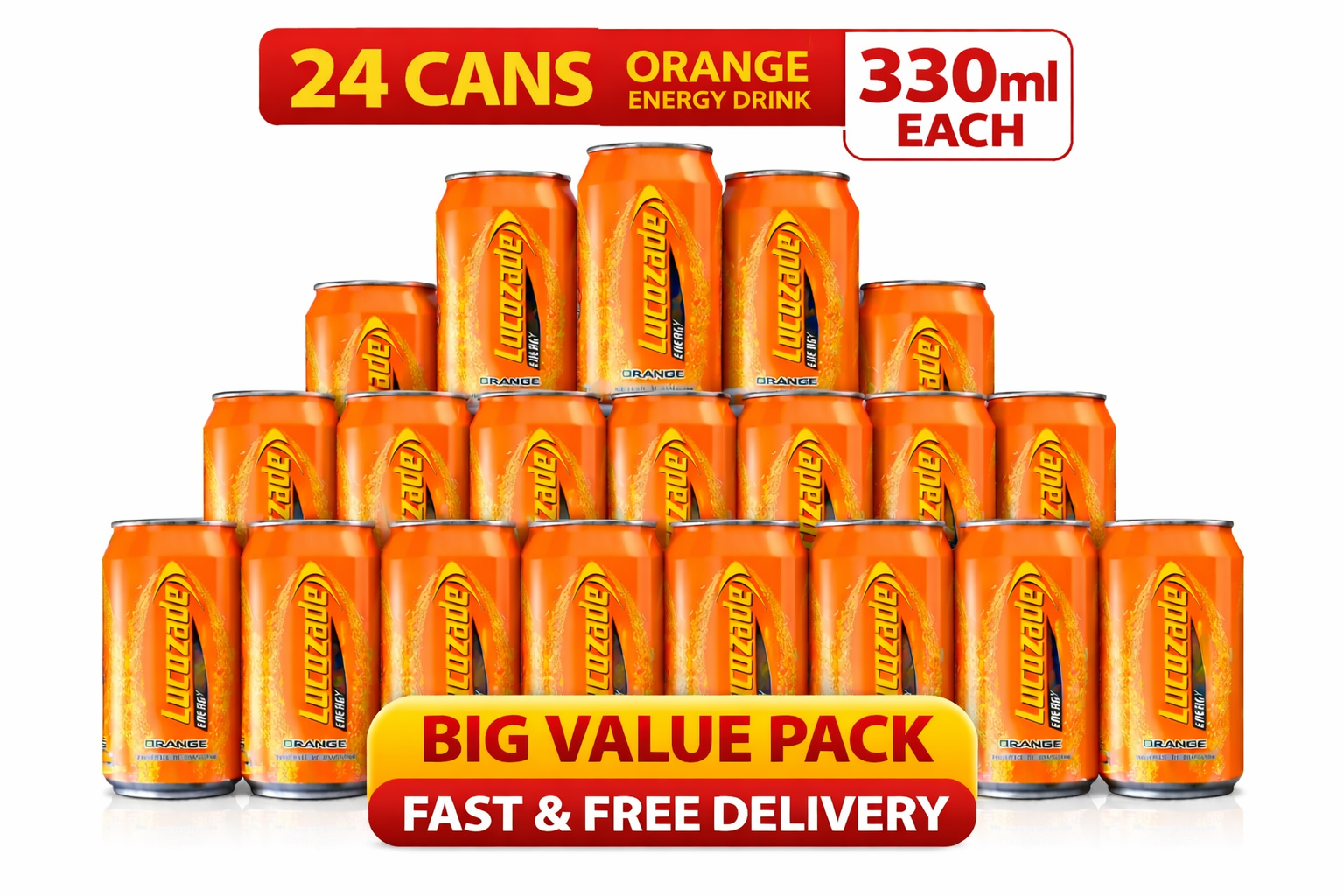 Lucozade Energy Orange 24 x 330ml Cans | Sparkling Energy Drink | Big Value Pack