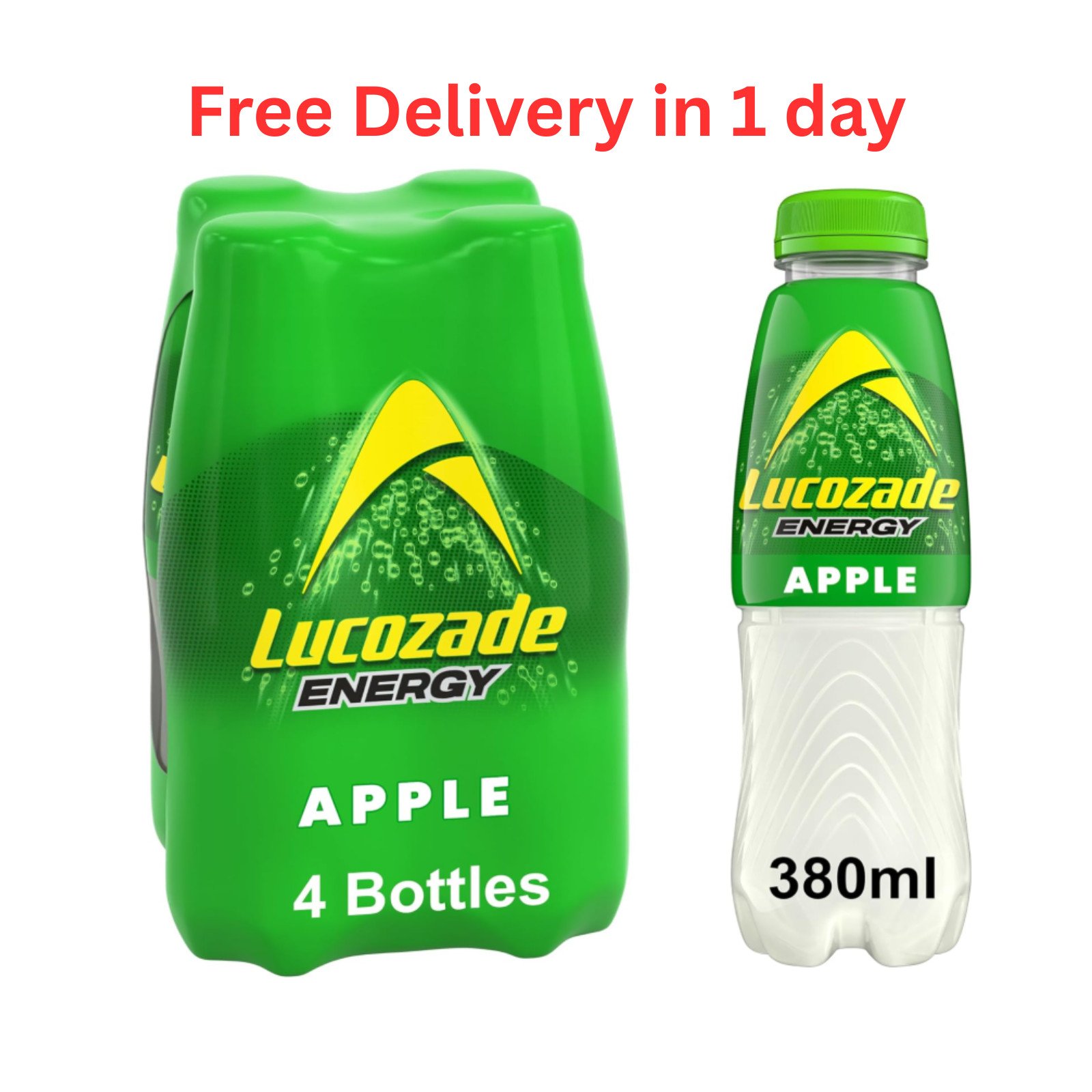 Lucozade Energy Apple 380ml (Pack of 4) FREE AND FAST SHIPPING