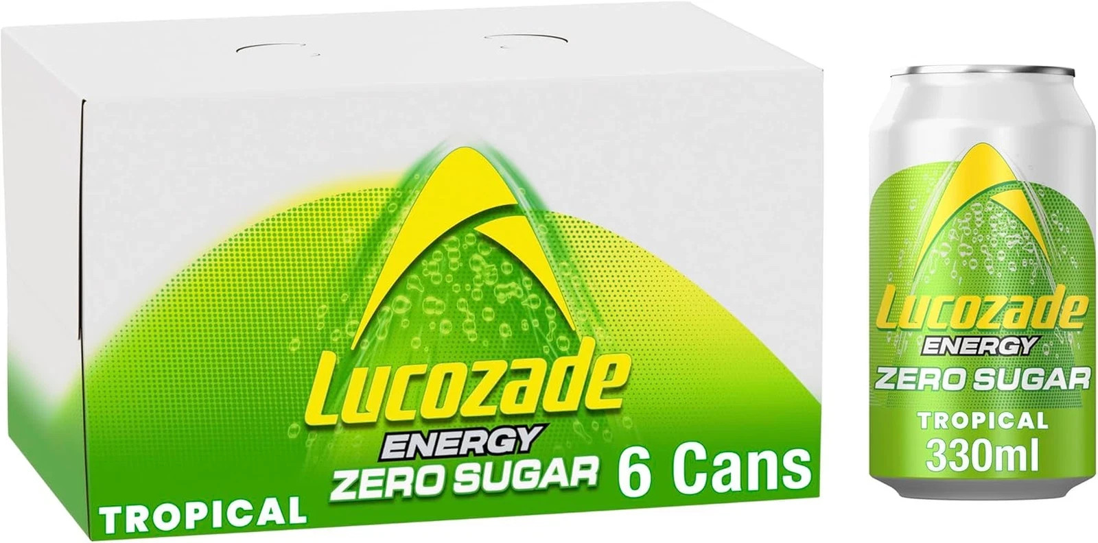 Lucozade Energy Zero Sugar Drink Tropical 330Ml Can (Pack of 6)
